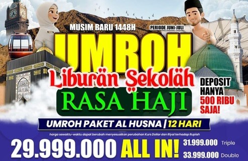 - Harga : Rp. 32 Juta (1 kamar 4 orang), Rp.34 juta (1 kamar 3 orang), Rp. 36 Juta (1 kamar 2 orang).
