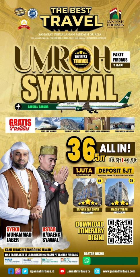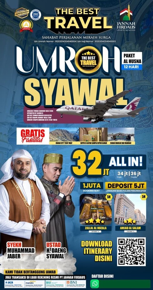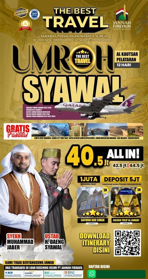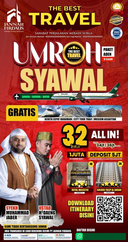 - Pelunasan wajib 30 hari sebelum keberangkatan